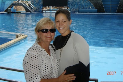 Anyway... Kristin is a trainer at SeaWorld! Julie shared some pictures with me and I just knew I would be stopping to see her show on the way home! Bridget, Cayden and Mya are driving home with me so it was a great idea to stop and see Kristin! We contacted her and arranged to visit SeaWorld ~ we sent this picture to tell her we were excited to see her at her fun job!