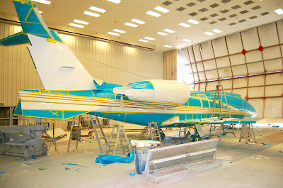 We went to Tegan's OFFICE today! West Star Aviation looks as busy as ever. Private jet owners are keeping this place hopping!! Here is the jet Tegan is currently painting. All the blue is paper. The white was painted then the plane is taped off with blue paper in prep for the pin striping! A lot of work goes into painting these jets.